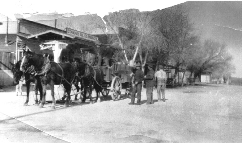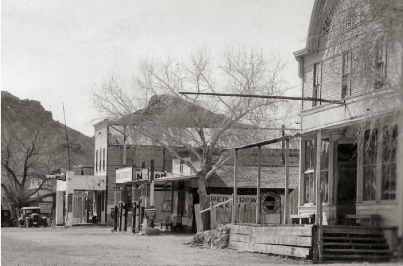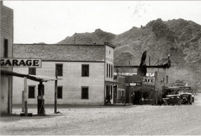 Subject: Main Street showing the Amargosa Cattle Store, Chevron Station and Hotel