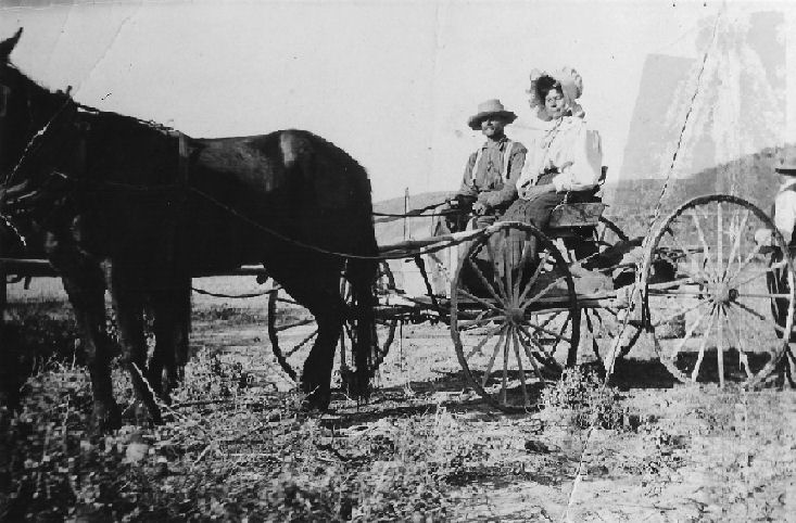 Subject: Philander Lee sitting in a buckboard with his daughter, Dora Lee Brown, probably around 1915. Probably photographed at Resting