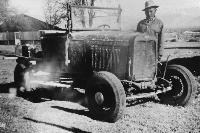 Subject: Model-A Ford belonging to Bob Lee. no one was allowed to sit in the front seat of the car with Lee because it was