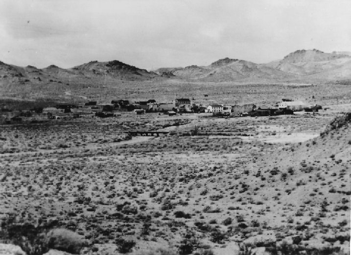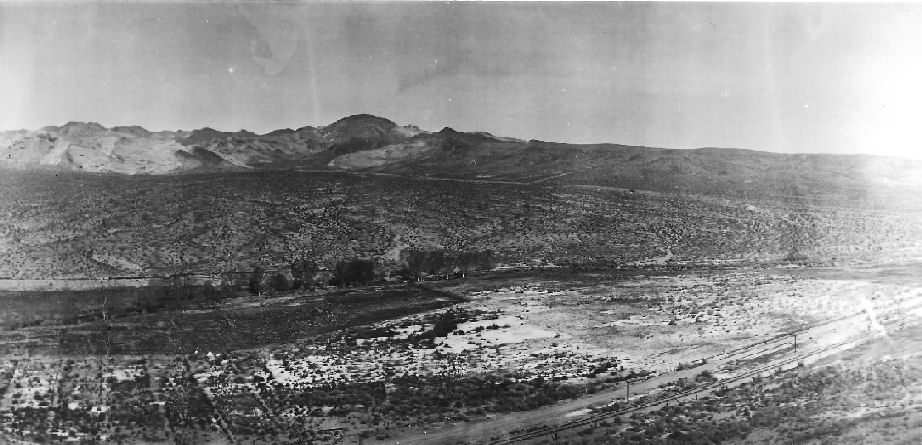 Subject: - View of Beatty, Nevada, taken from the top of the water tank at the Crowell home, ca. 1940