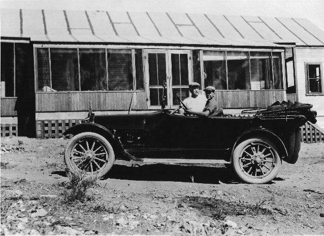 Subject: - Joshua Irving Crowell and his teenage son, J. Irving Crowell, Jr., in a 1917 Buick at their new house at the Chloride