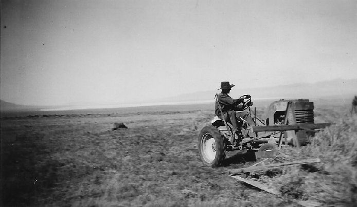 Subject: G.M. Carver Ranch - Smokey Valley - Carver mowing cheat grass on his ranch. - June 12, 1944 - C.E.B.