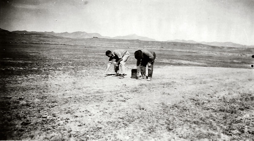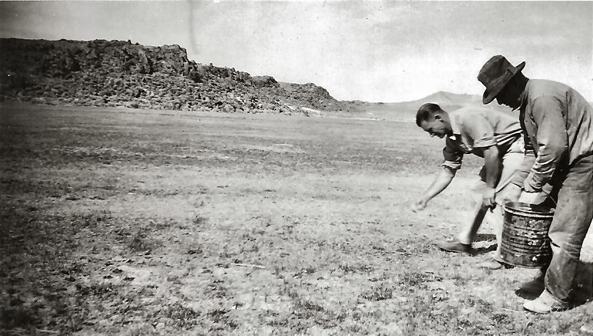 Subject: Joe Clifford Ranch - Stone Cabin Valley - Joe Clifford Sr. and John Ahern spreading superphosphate on bare spots