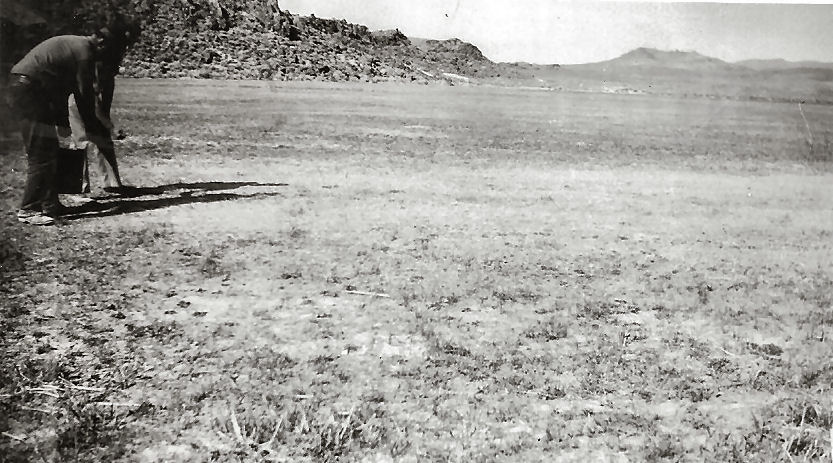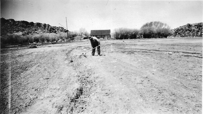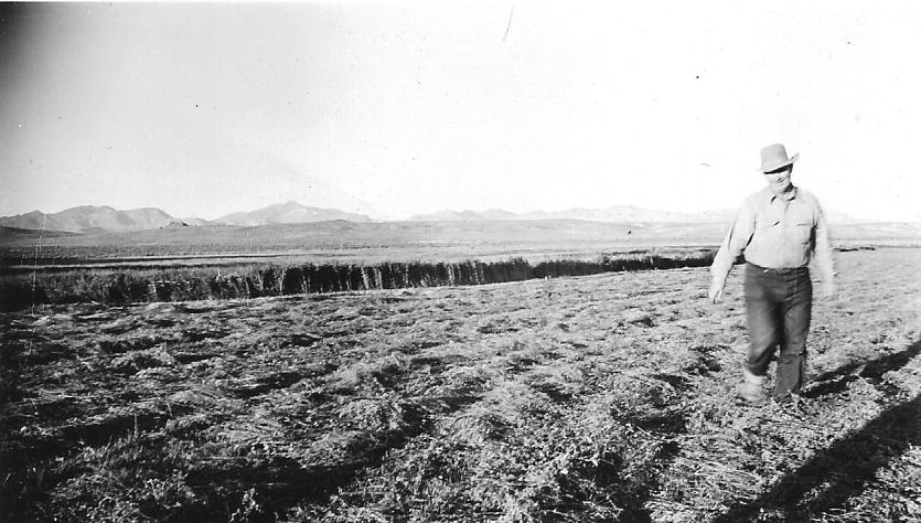 Subject: Joe Clifford Ranch - Stone Cabin Valley - Joe Clifford, Sr. irrigating seed plot sowed in new ground at edge of