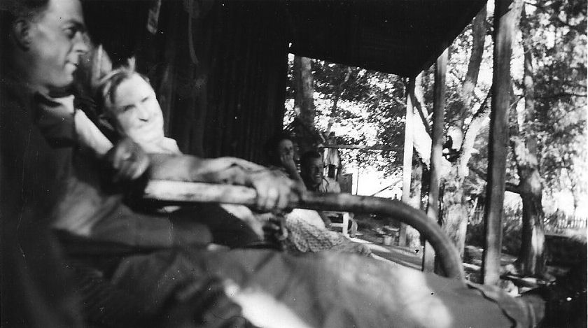 Subject: Joe Clifford Ranch - Stone Cabin Valley - Relaxing on front porch at Clifford Ranch home. From left: