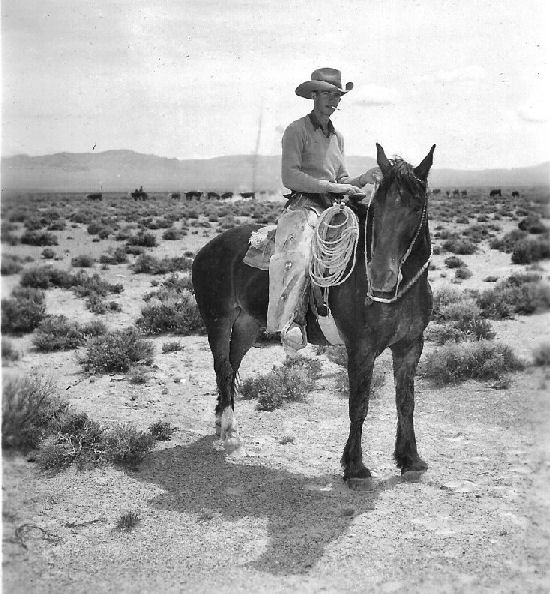 Subject: Joe Clifford Ranch - Stone Cabin Valley - Joe Clifford, Jr. up on his favorite cow horse "Mike". A top hand, bred