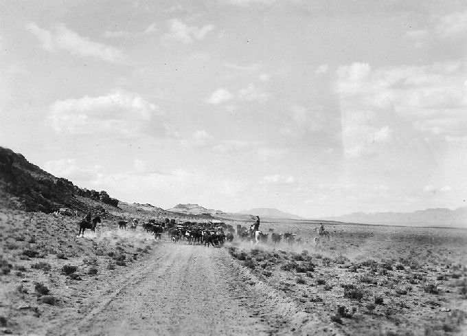Subject: Joe Clifford Ranch - Stone Cabin Valley - Roy, Joe Sr. and Joe Jr. trailing some of their herd home