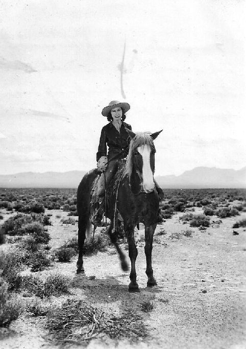 Subject: Joe Clifford Ranch - Stone Cabin Valley - Marguerite Clifford Boscovich, top cow girl up on "Baldy". She takes