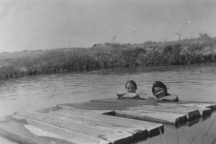 Subject: Unidentified children swimming in the pool at Crystal Springs, Ash Meadows, Nevada, ca. 1933.